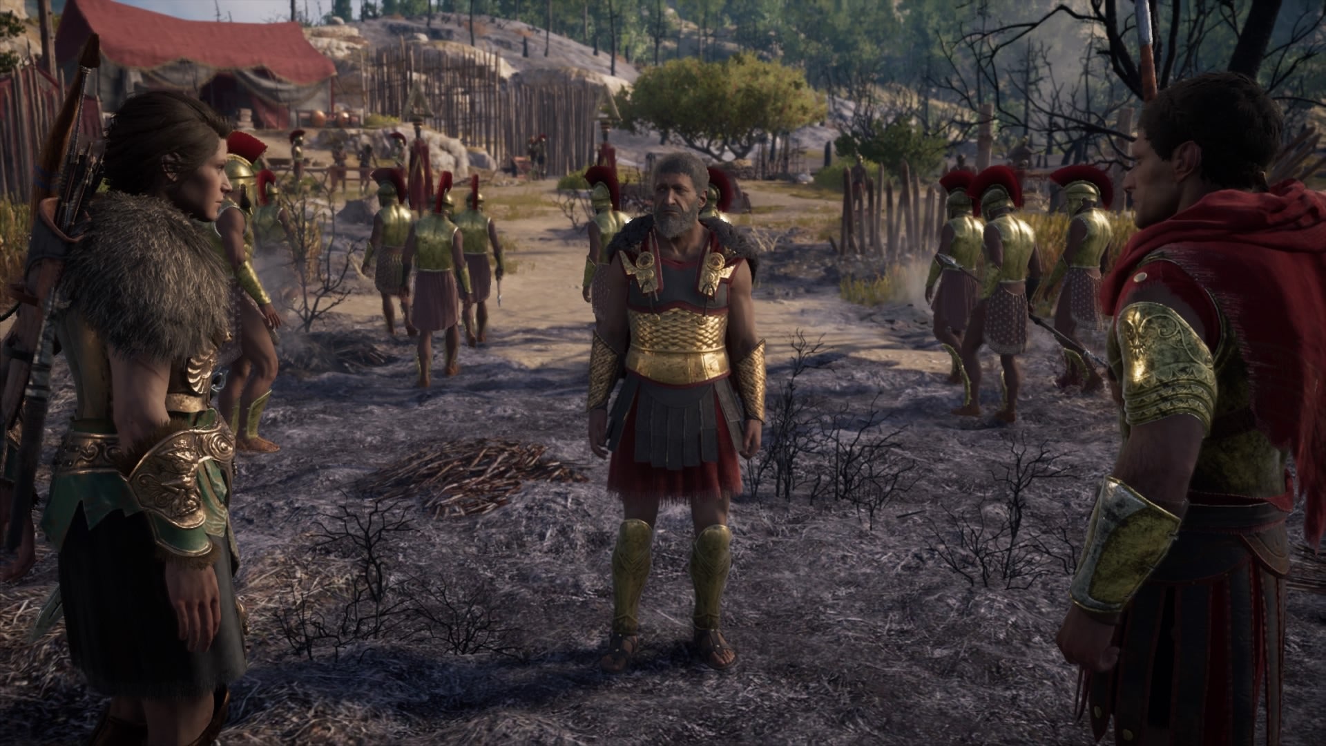 The last target is the most straightforward. All you lot have to do is go and find Nesaia's camp in Boeotia. Information technology's just to the east Thebes, roughly level with the sports expanse outside the urban center walls to the e.